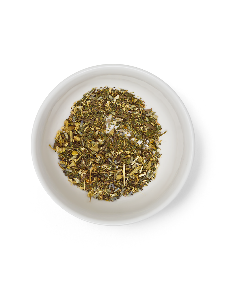 Spearmint, Chamomile, Valerian Root, Skullcap, Lemon Balm, Passionflower, Lavender, Lemon Verbena